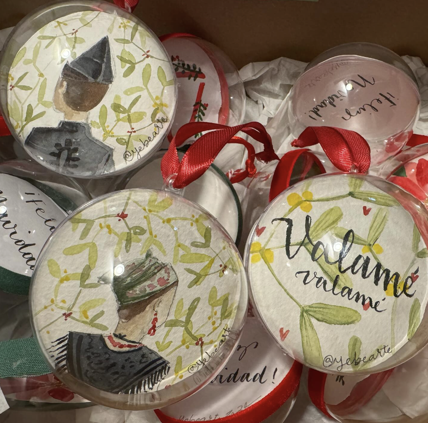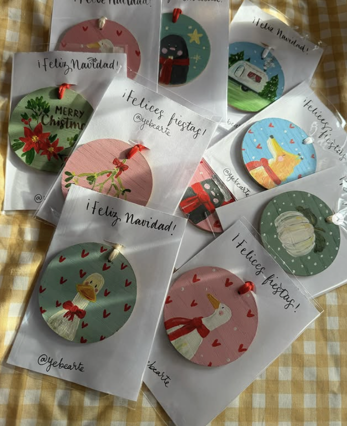 En esta sección podrás encontrar diferentes elementos decorativos, realizados todos a mano y de manera individual, entre ellos, bolas de navidad, letreros, ilustraciones, y postales de Navidad.