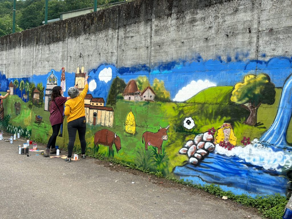 En colaboración con el El Xiblu, el Ayuntamiento de Teverga y el Principado de Asturias (Consejería de Transición Ecológica, Industria y Desarrollo Económico) llevamos a cabo un taller en el que juntamos: cultura, tradición y arte urbano. Poniendo en conjunto los saberes y conocimientos de la zona, con los elementos que más caracterizan esta zona asturiana y con la manera de plasmarlo en un lugar público.